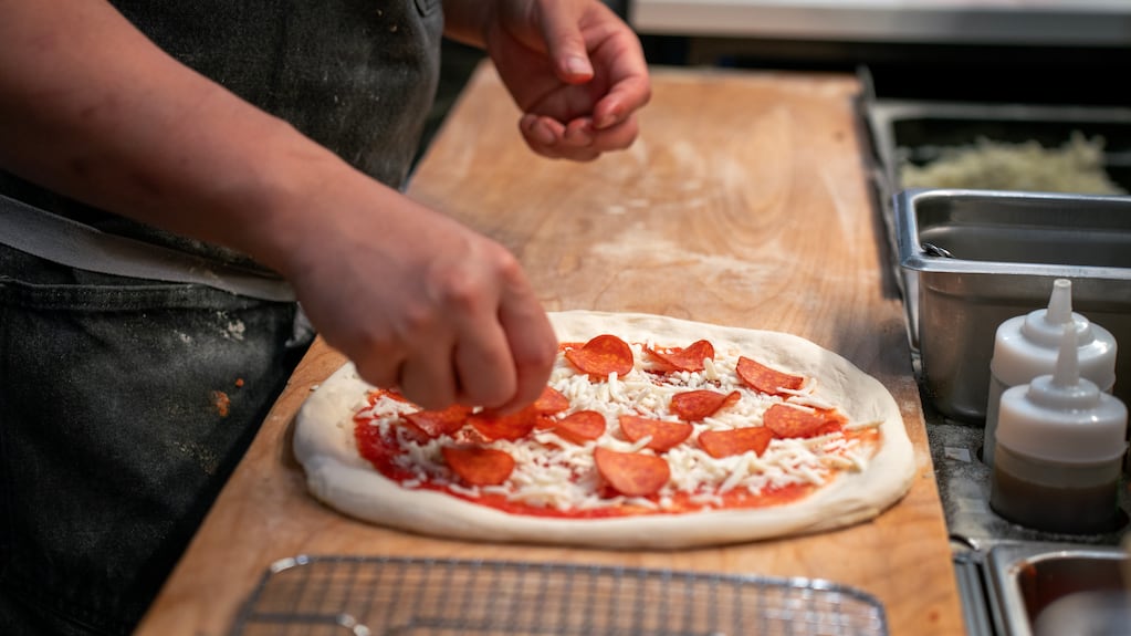 “We have a tiny space. We can only fit four pizzas over here,” he said, pointing to the counter. “We’re generally making six at a time. We can’t expand here, so it’s just been trying to figure out how to do more with less.”